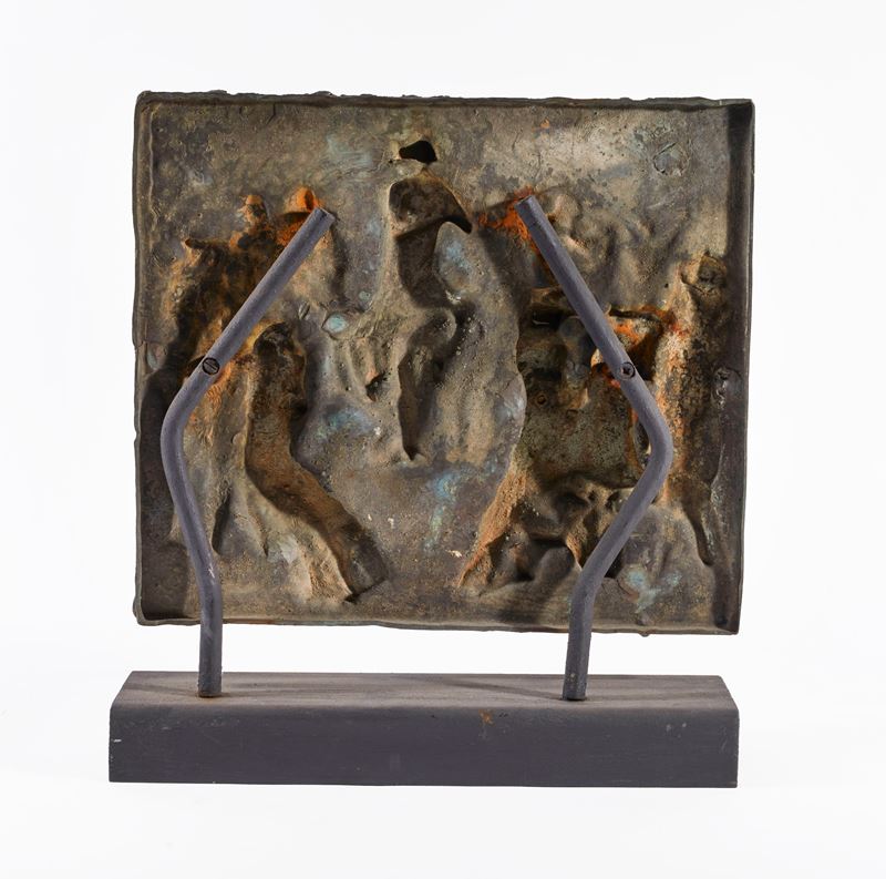 ANGELO BIANCINI (Castel Bolognese 1911 - Castel Bolognese 1988) "Senza titolo". Scultura in bronzo. Cm 34x39x5.