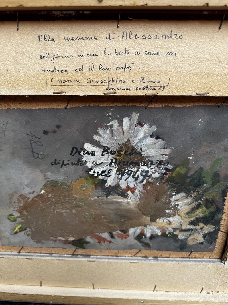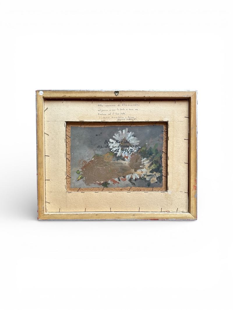 DINO BOSCHI (Bologna 1923 - Bologna 2015) “Natura morta”, 1949. Olio su cartone. Cm 38x49,5. Opera firmata e datata in basso a destra Boschi '49. Al retro opera firmata e datata Dino Boschi 1949.
