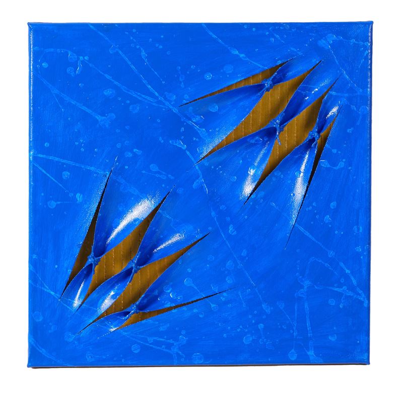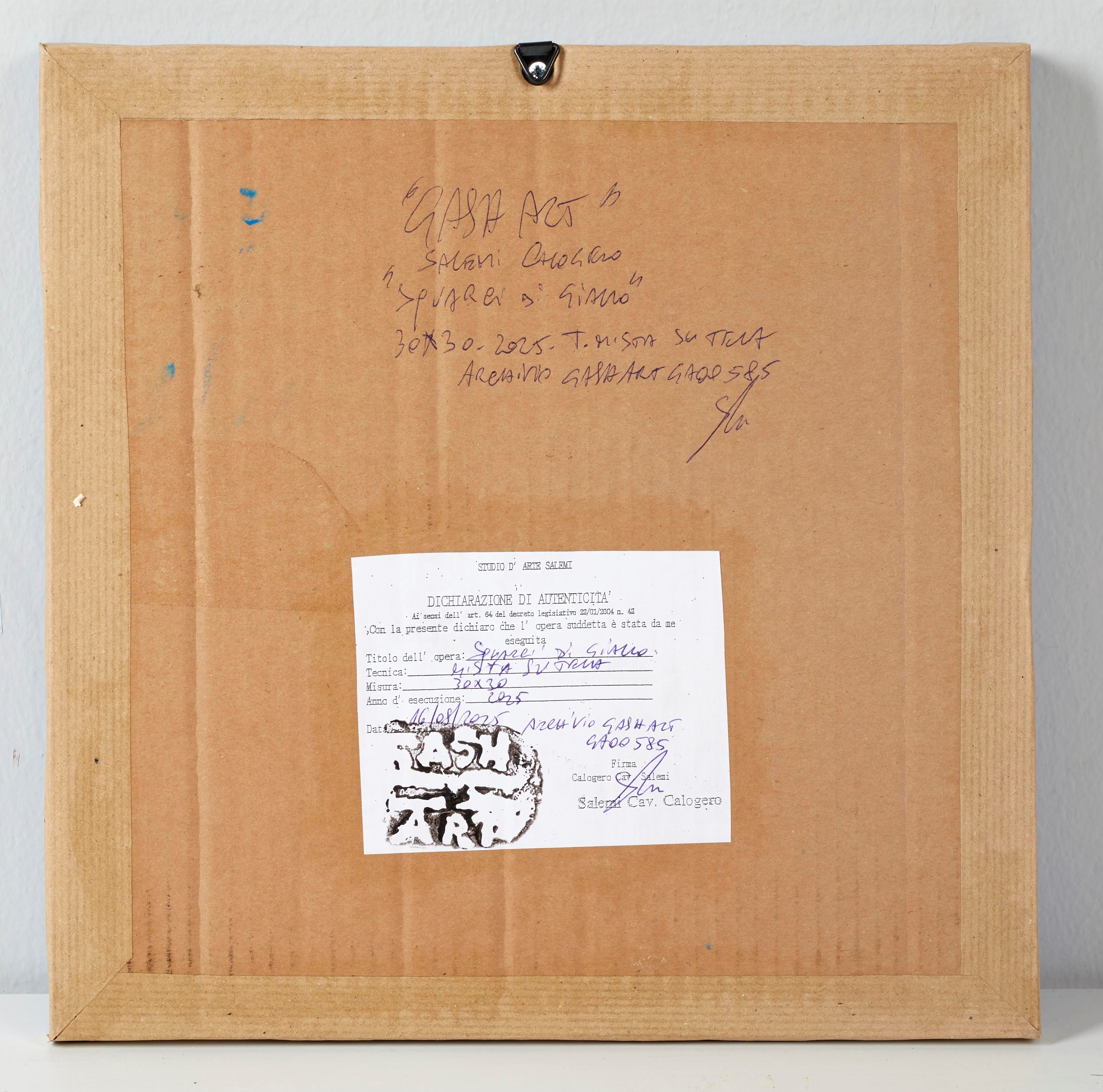 CALOGERO SALEMI (1966) "Squarci di giallo", 2025. Tecnica mista su tela. Cm 30x30. Al retro reca etichetta di autenticità a firma Calogero Salemi. Opera accompagnata da autentica a firma del maestro.