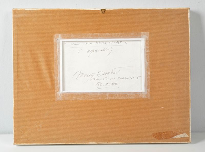 MACEO CASADEI (Forlì 1899 - Forlì 1992) "Nubi sul mare calmo". Acquerello su carta. Cm 22x32. Opera firmata in alto a destra Maceo. Al retro opera firmata e intitolata.