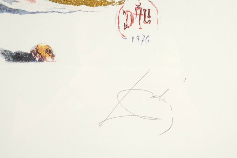 SALVADOR DALI' (Figueres 1904 - 1989) "Transcendant Passage (Arches Girl; Daphne II)", 1979. Incisione e acquatinta su carta, con applicazione di glitter. Cm foglio: 80x60. Opera firmata in basso a destra Dalì. Reca numeri di tiratura in basso a sinistra 141/250.