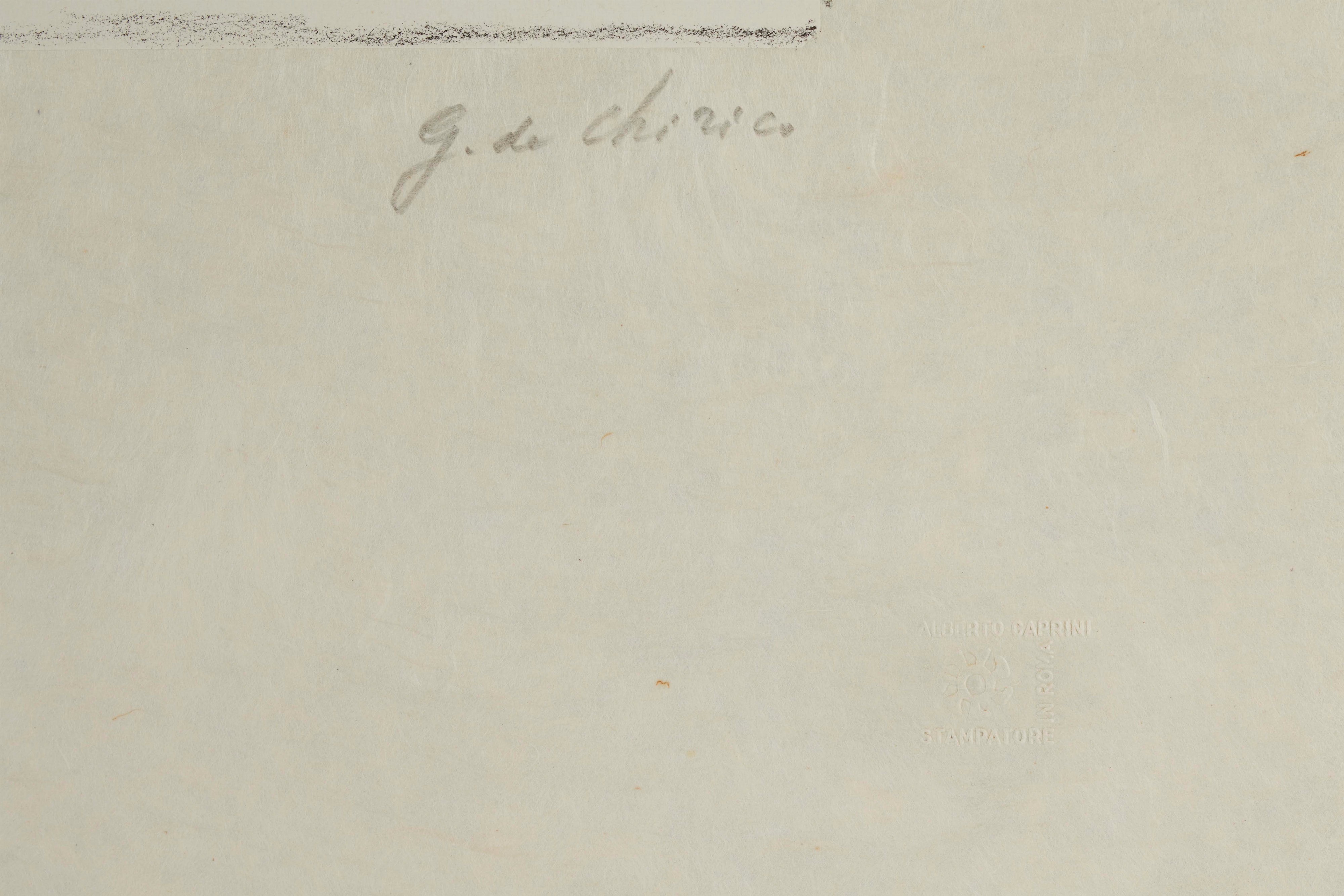 Bibliografia: Giorgio de Chirico, Catalogo dell'opera grafica 1969-1977, Edizioni Bora, pag. 196, tav. 171.
