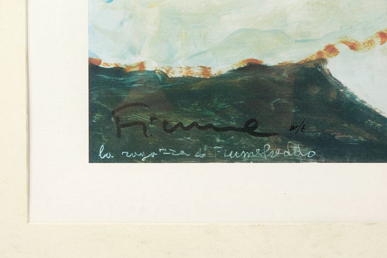 SALVATORE FIUME (Comiso 1915 - Milano 1997) "La ragazza di Fiumefreddo". Serigrafia a 8 colori su carta filigranata. Cm 60x80. Opera firmata a stampa in basso a sinistra Fiume. Reca numeri di tiratura in basso sinistra W/Z. Al retro reca certificato di autenticità rilasciato dalla Fondazione Fiume.