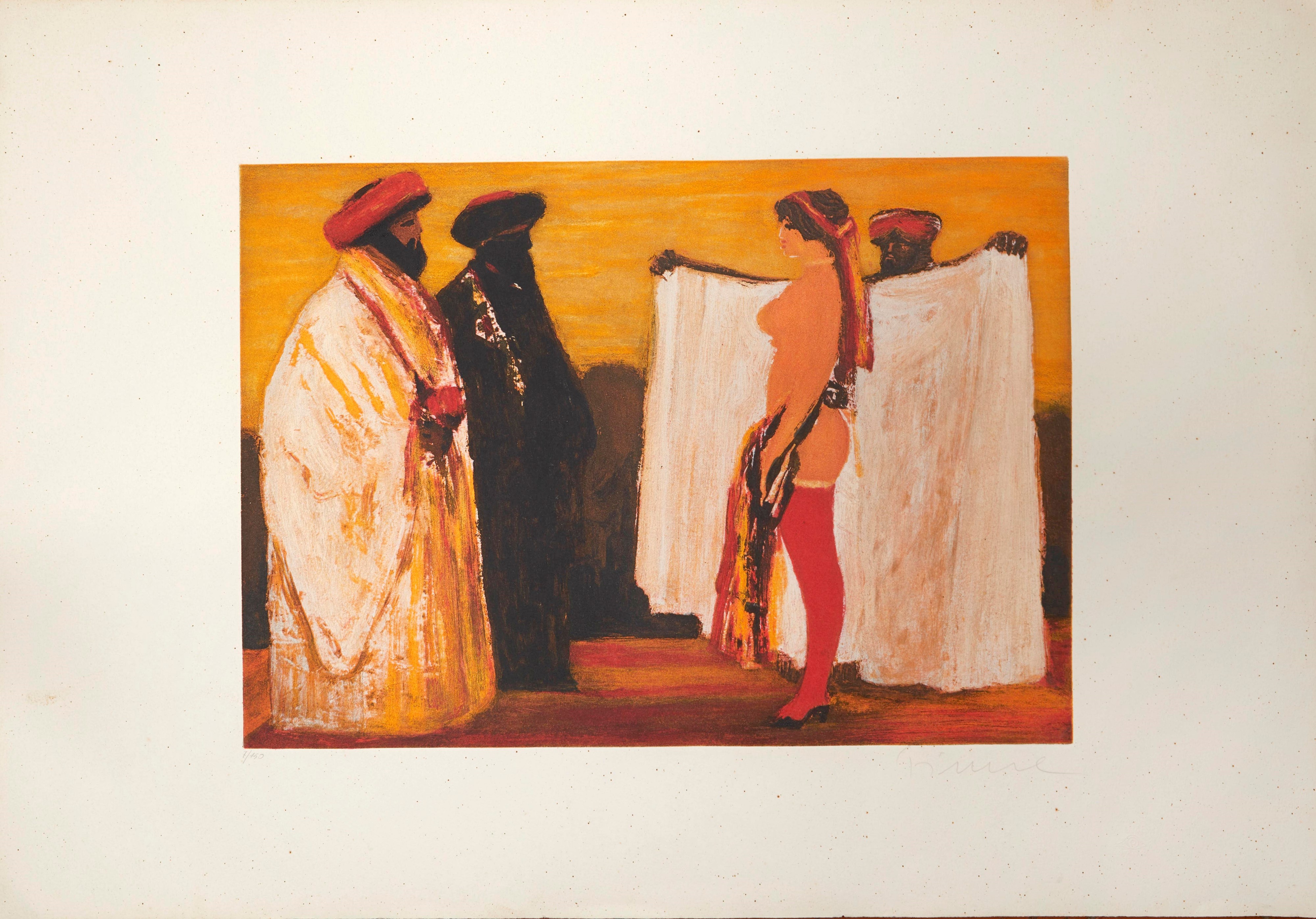 SALVATORE FIUME (Comiso 1915 - Milano 1997) "Senza titolo". Litografia a colori su carta. Cm 60x80. Opera firmata in basso a destra Fiume. Reca numeri di tiratura in basso a sinistra 7/150 (lievi difetti).