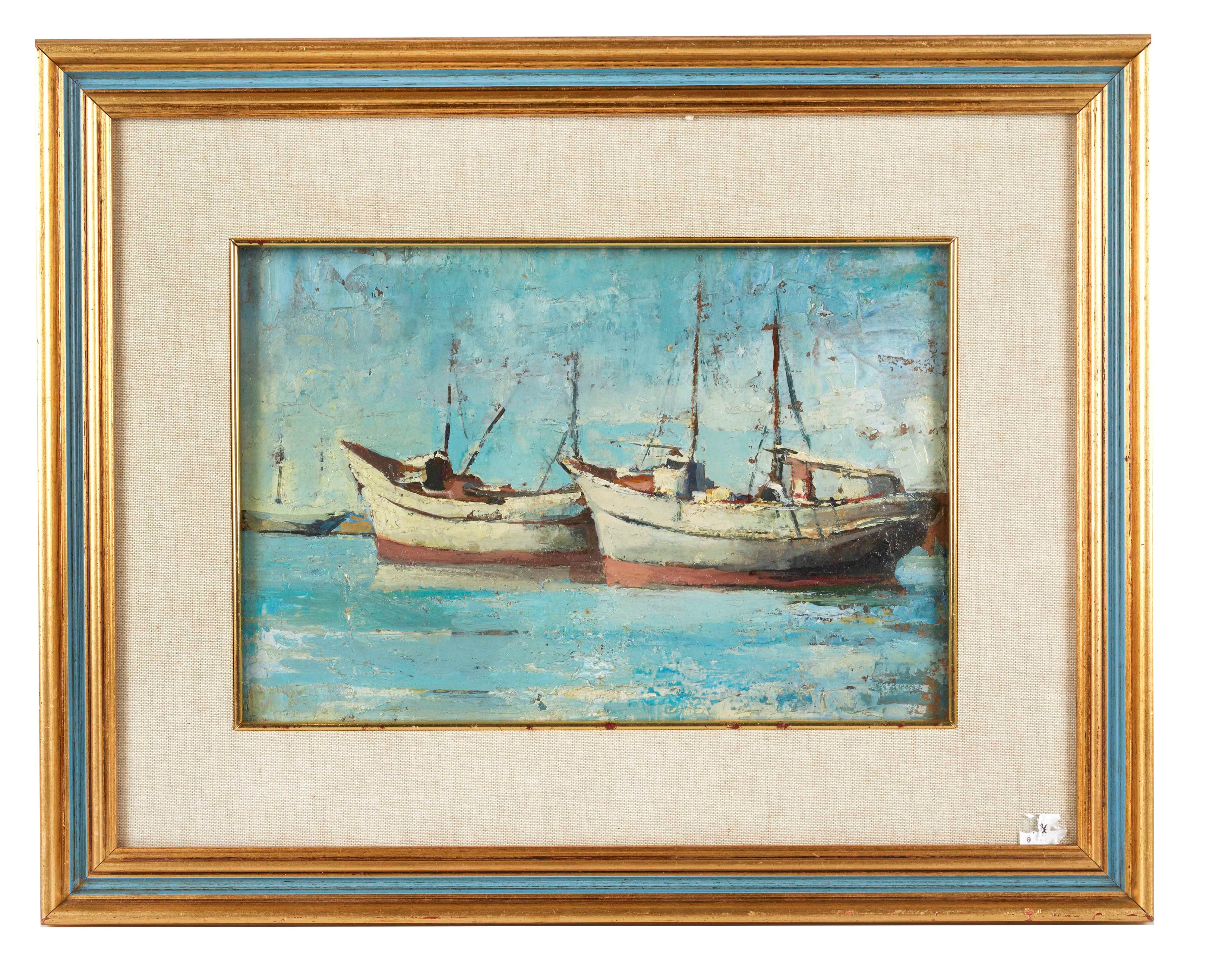 PAOLO FROSECCHI (Firenze 1924 - 1991) "Marina", 1952. Olio su tavola. Cm 22x32,5. Al retro reca scritta per autentica a firma Frosecchi.