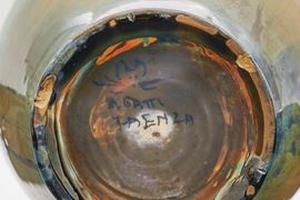 RICCARDO GATTI (Faenza 1886 - 1972) Vaso biansato con manici, in maiolica a lustro con decori vegetali. Cm 29,5x21. Reca firma sotto la base R. Gatti, Faenza.
