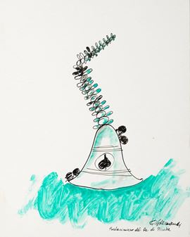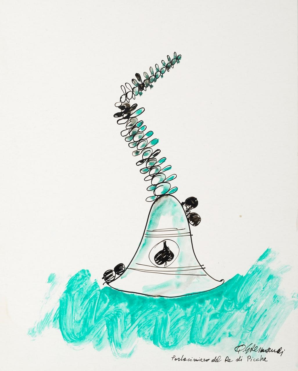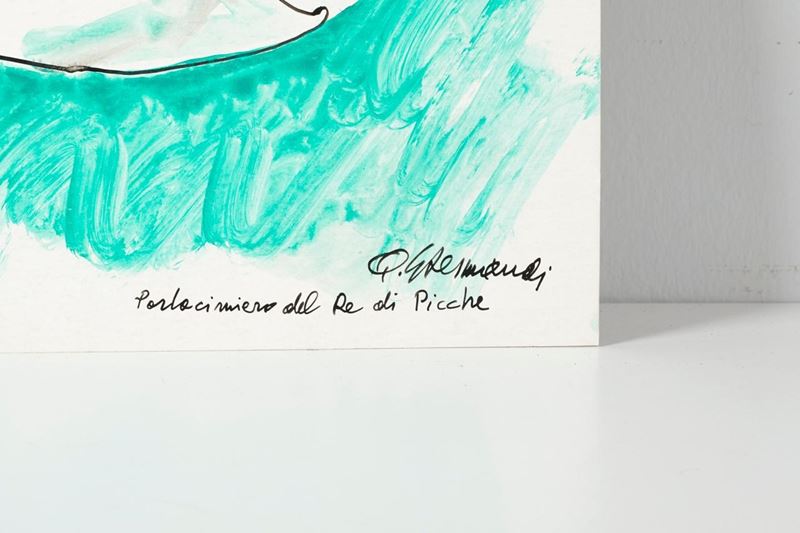 QUINTO GHERMANDI (Crevalcore 1916 - San Lazzaro di Savena 1994) "Parlacimiero del re di picche". Tecnica mista su cartoncino. Cm 50x40. Opera firmata in basso a destra Q. Ghermandi. Reca titolo in basso a destra.