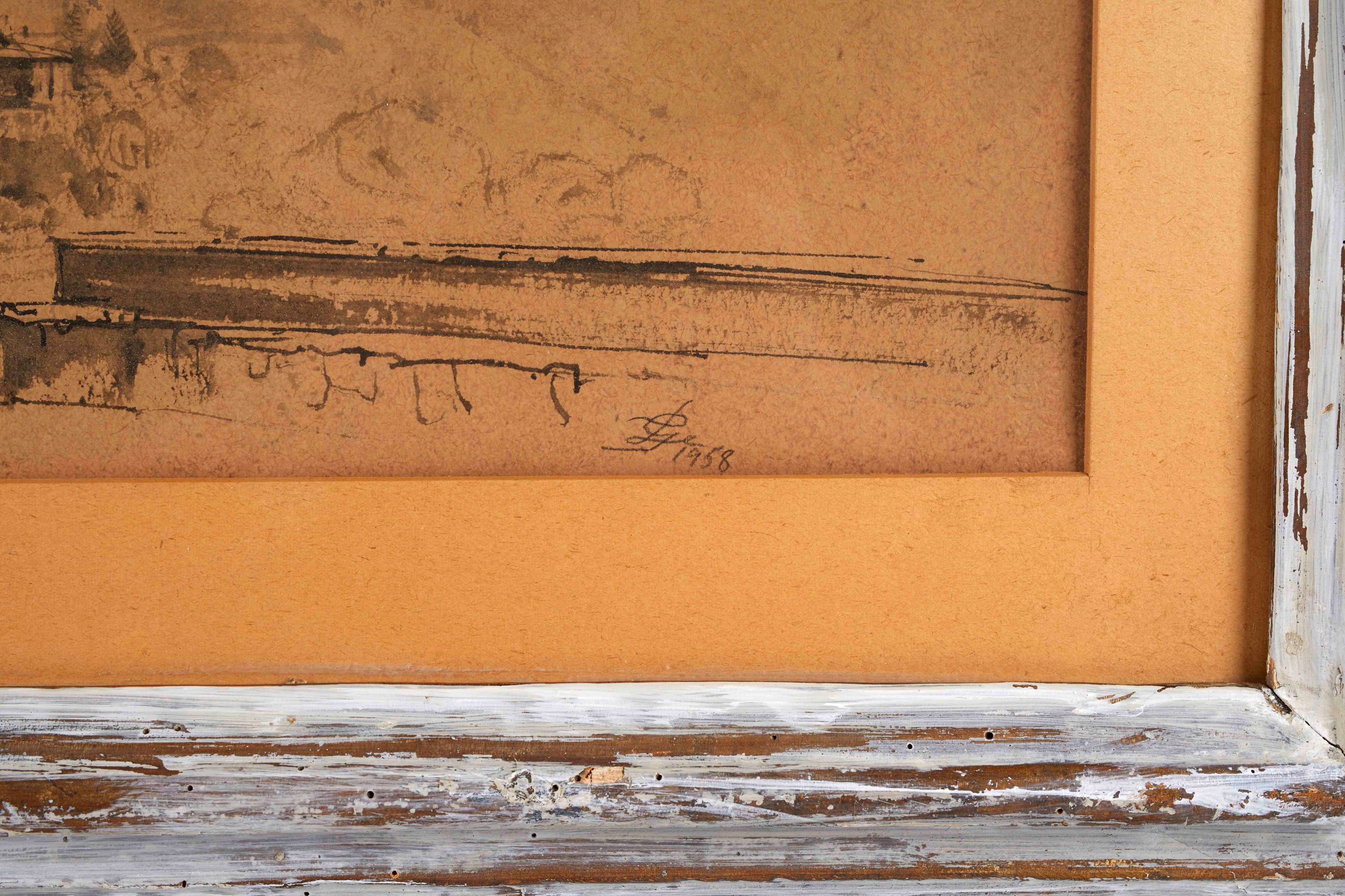 LUCIANO GUARNIERI (Firenze 1930 - 2009) "Brandon (Inghilterra)", 1958. Tecnica mista su cartone. Cm 37,5x54,5. Opera siglata e datata in basso a destra. Al retro opera intitolata e firmata.