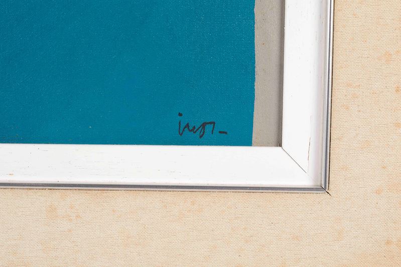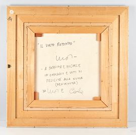 INOS CORRAINI (Valogna 1929) "Il volto rotondo", anni '90. Olio su tela. Cm 50×50. Opera firmato in basso a destra Inos. Al retro reca titolo, firma e dedica.
