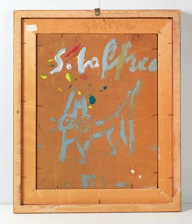 SILVIO LOFFREDO (Parigi 1920 - Trebiano 2013) "Senza titolo". Olio su faesite. Cm 45x35,5. Opera firmata in alto a sinistra Loffredo. Al retro opera firmata.
