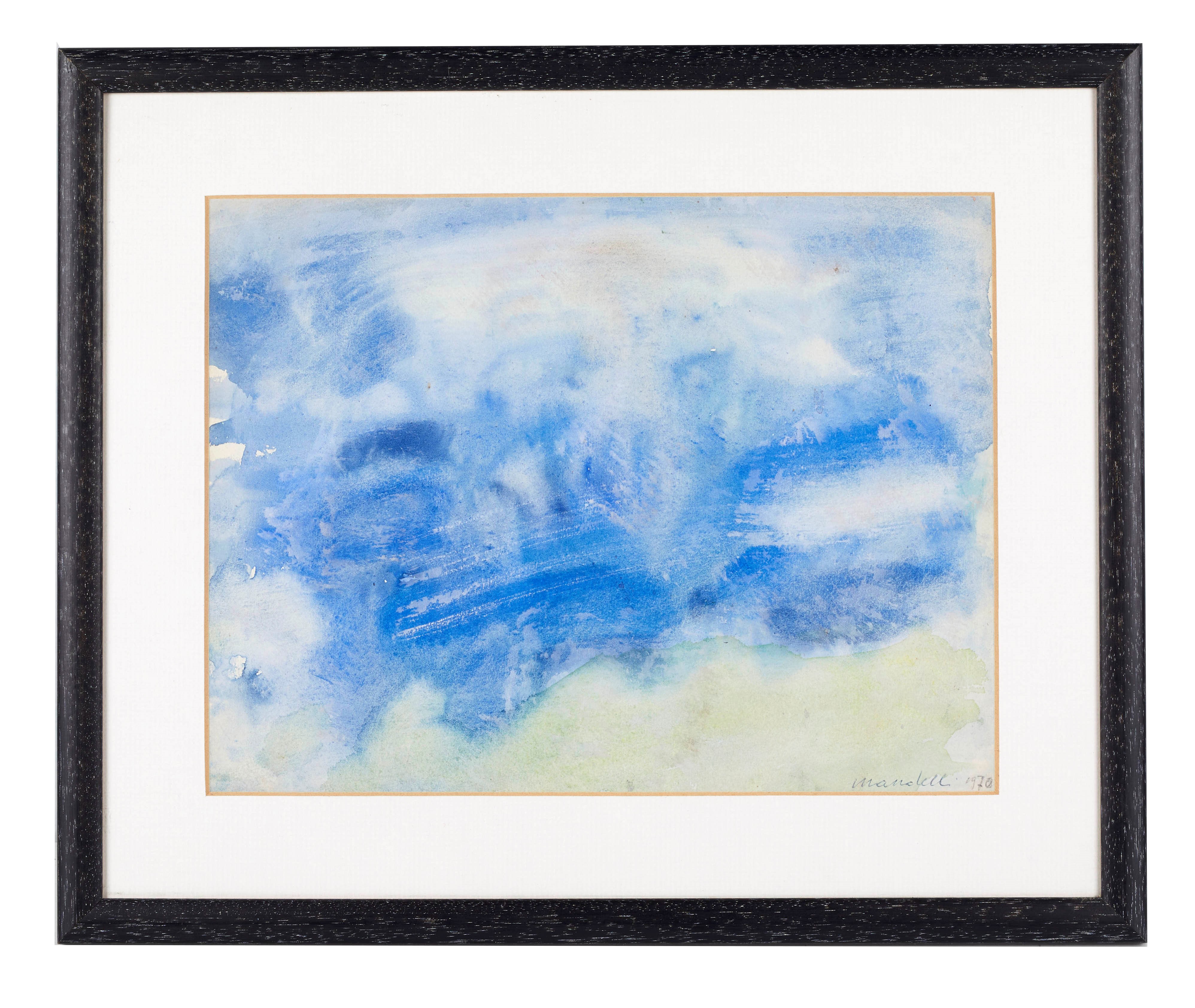 POMPILIO MANDELLI (Luzzara 1912 - Bologna 2006) "Senza titolo", 1970. Acquerello su carta. Cm 34,5x49. Opera firmata e datata in basso a destra Mandelli 970. Opera intitolata e datata al retro Pioggia nel paesaggio 1970.