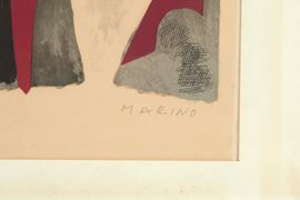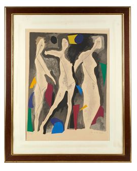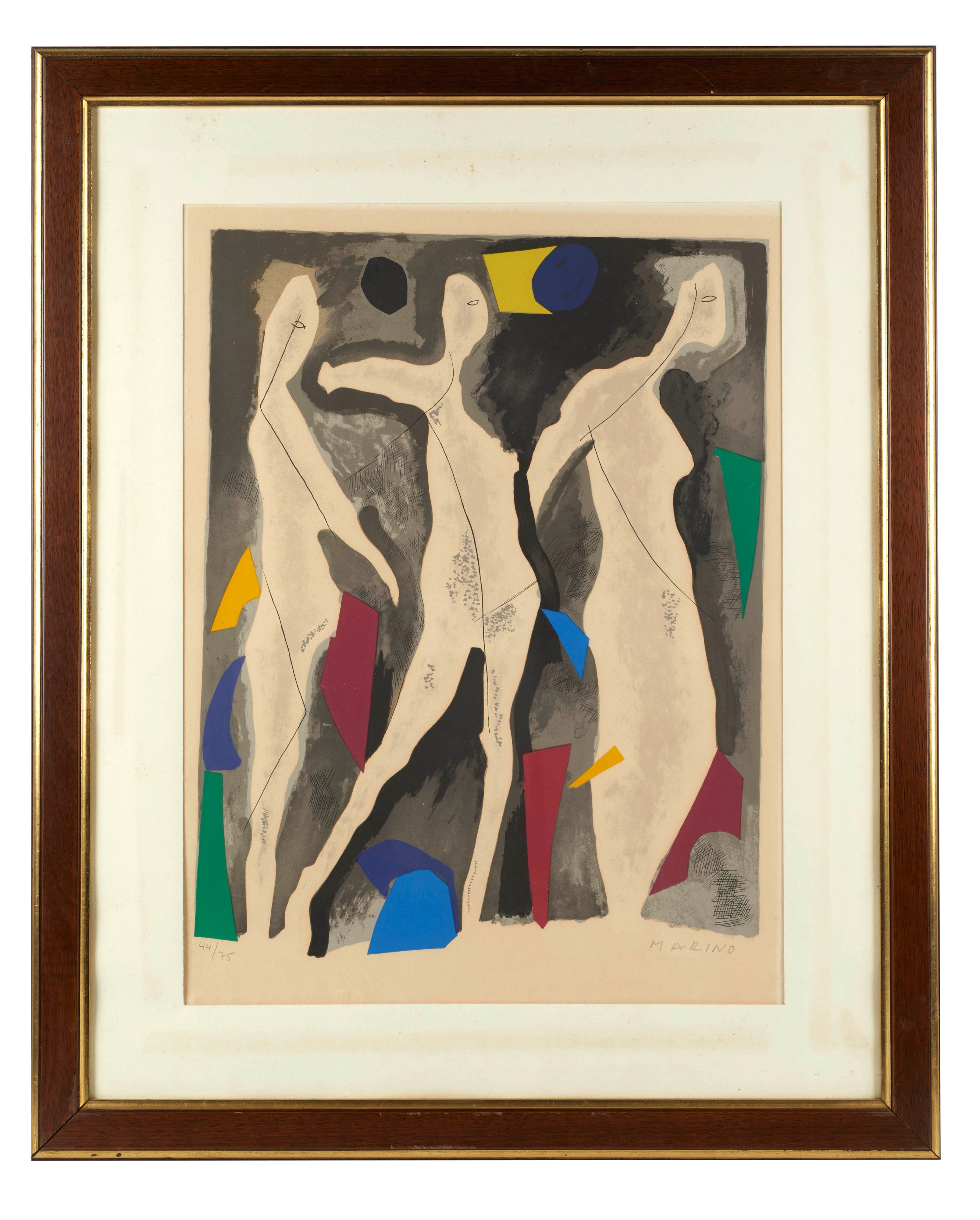 MARINO MARINI (Pistoia 1901 - Viareggio 1980) "Personnages du Sacre du Printemps". Litografia a colori su carta. Cm 70,5x56. Opera firmata in basso a destra Marino. Reca numeri di tiratura in basso a sinistra 44/75. Al retro reca etichetta della Galleria d'arte Marescalchi, Bologna.