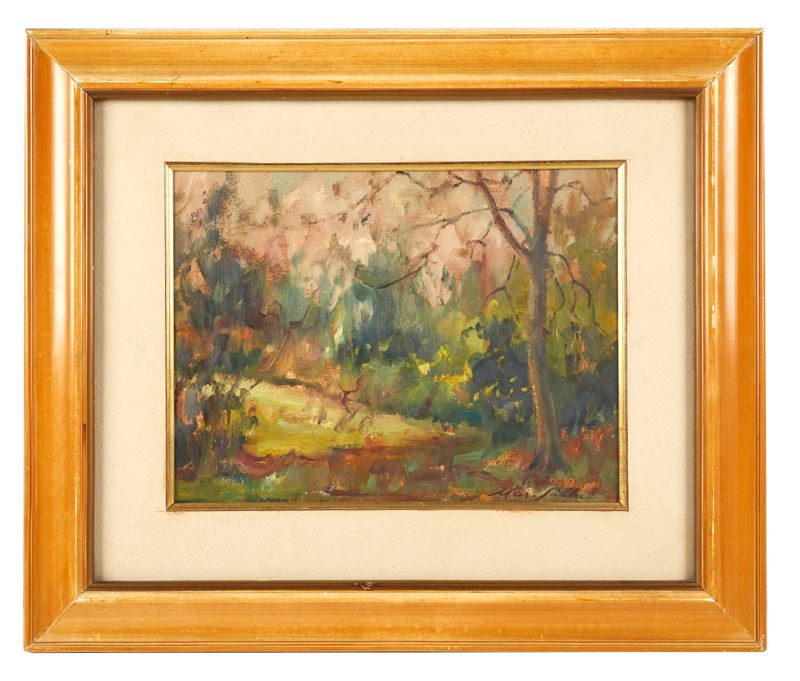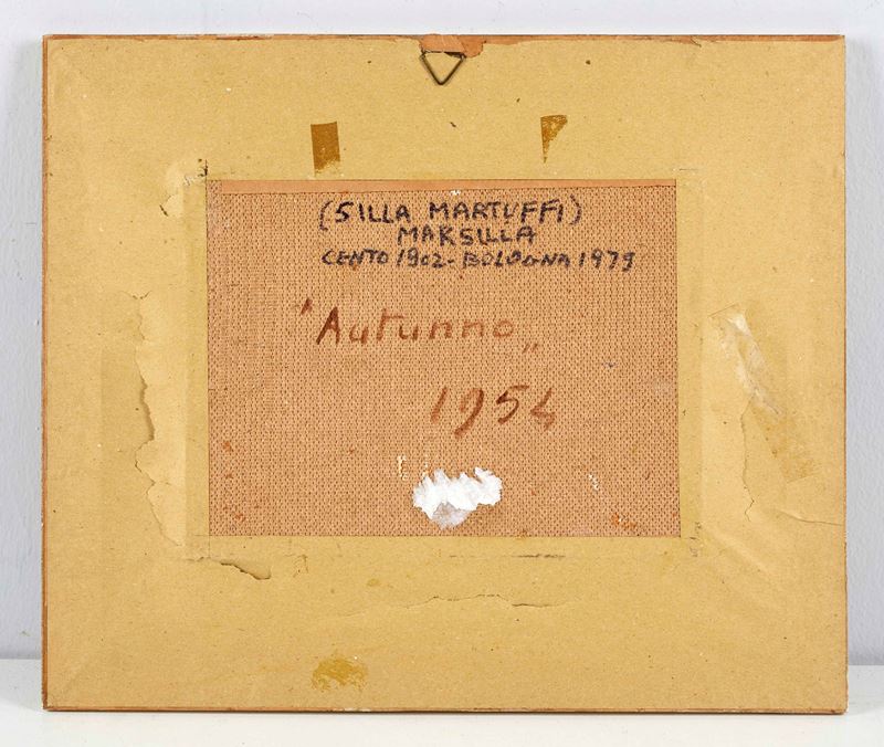 MARSILLA (Cento 1902 - Bologna 1979) "Autunno", 1954. Olio su tavola. Cm 21x28. Opera firmata in basso a destra Marsilla. Al retro opera intitolata e datata.