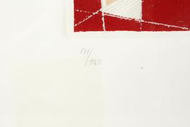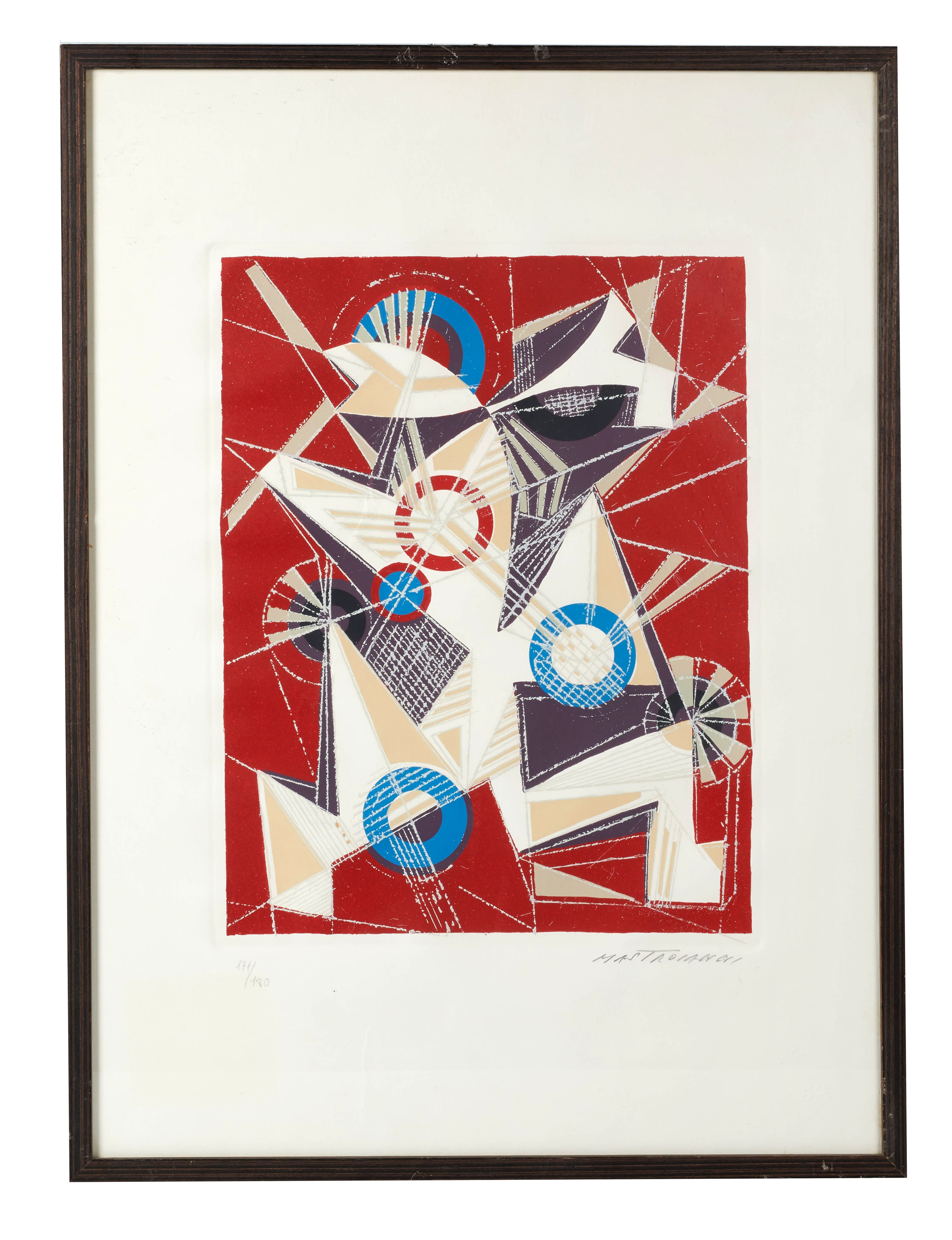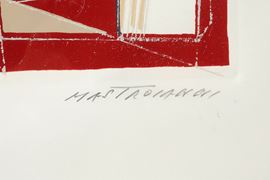 UMBERTO MASTROIANNI (Fontana Liri 1910 - Marino 1998) "Composizione". Litografia a colori su carta. Cm 50x70. Opera firmata in basso a destra Mastroianni. Reca numeri di tiratura in basso a sinistra 171/180.