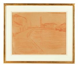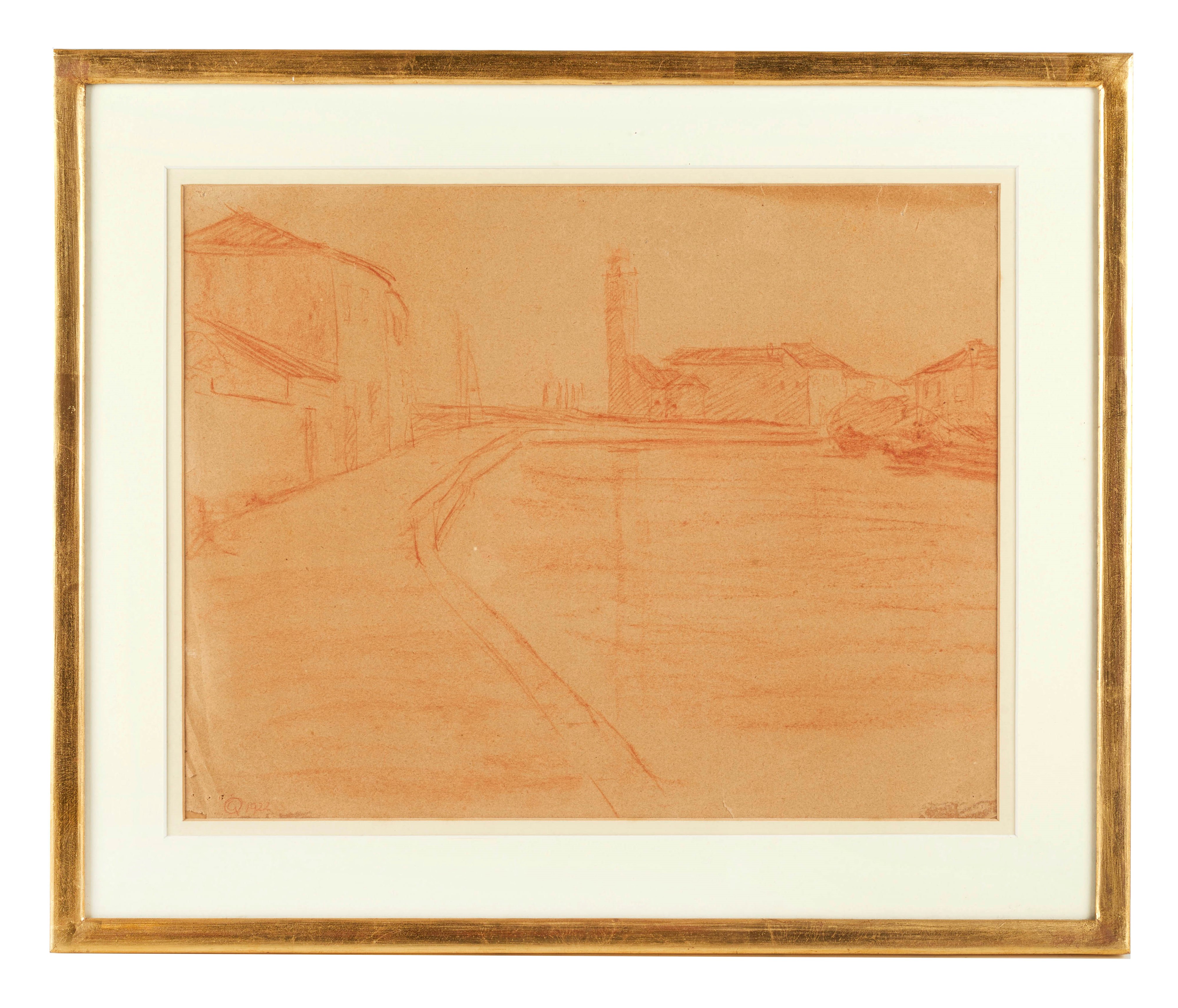 GABRIELLA OREFICE (Padova 1893 - Venezia 1980) "Paesaggio lagunare", 1922. Sanguigna su carta. Cm 30x38. Monogramma e data in basso a sinistra.