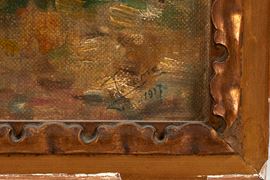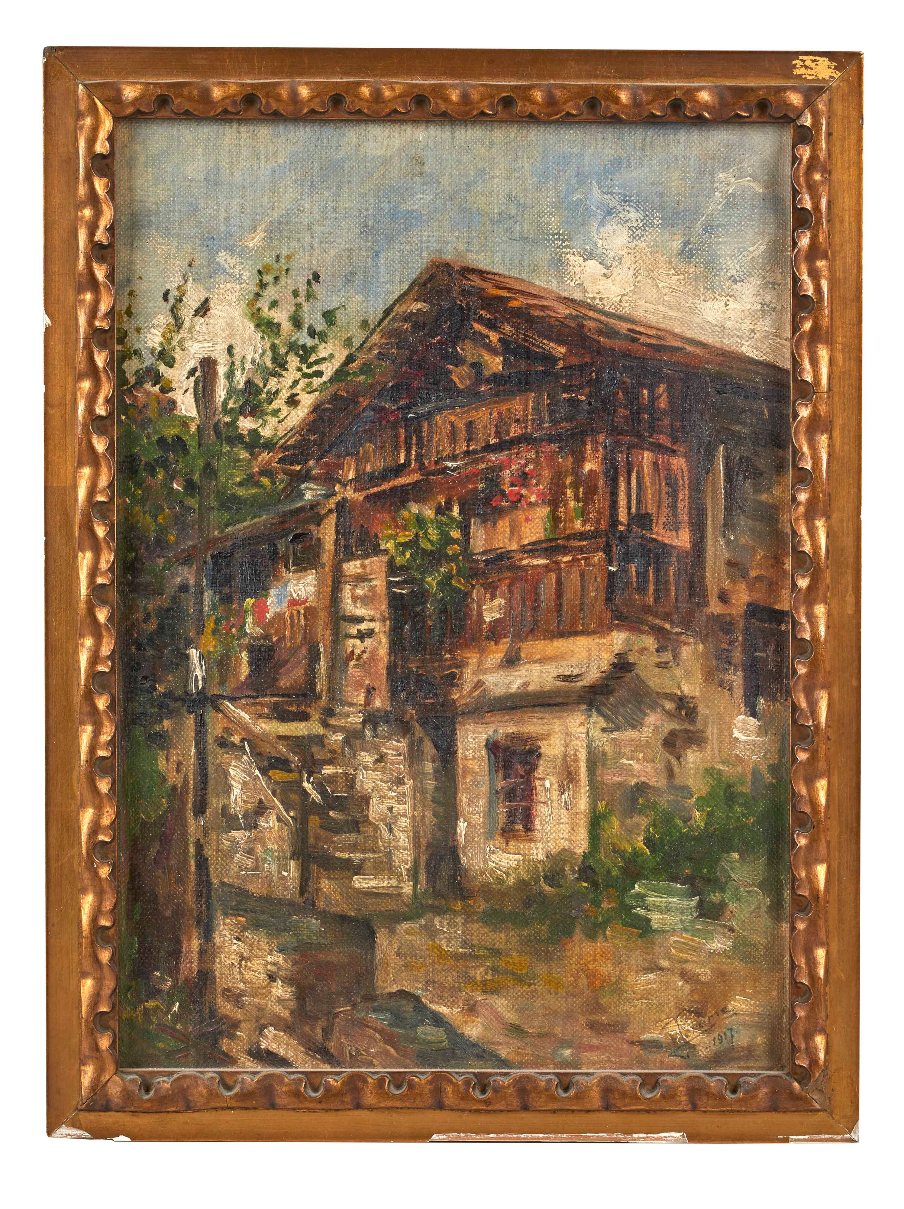 AUGUSTO SEZANNE (Firenze 1856 - Venezia 1935) "Chalet", 1917. Cm 34x23,5. Olio su tela. Opera firmata e datata in basso a destra Sezanne 1917.