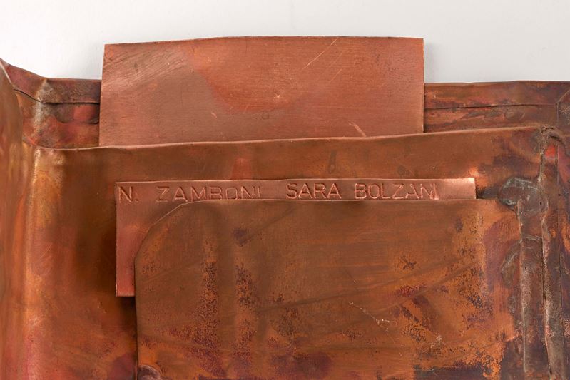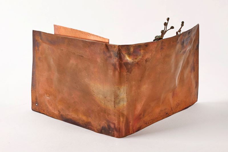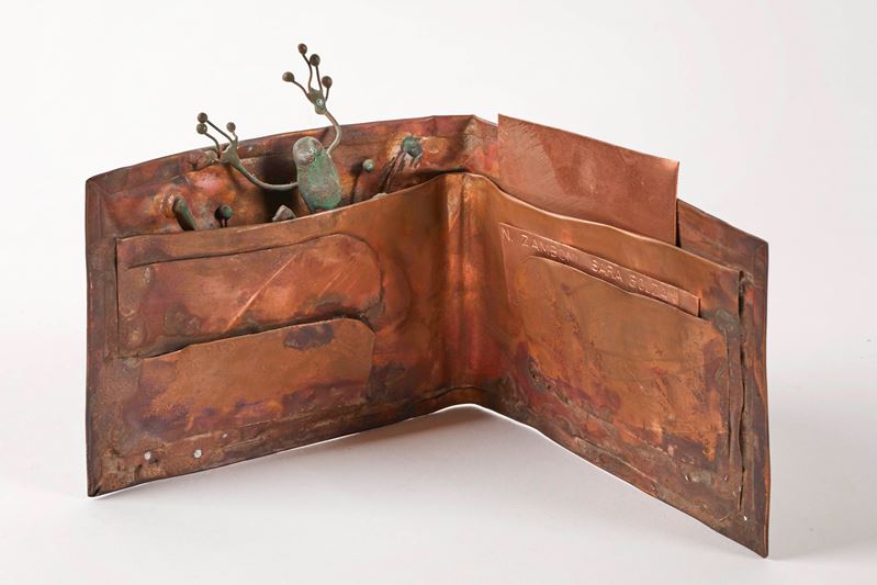 NICOLA ZAMBONI (Bologna 1943 - 2023) "Portafoglio". Scultura in rame. Cm 11,5x19x11. Opera firmata Zamboni.