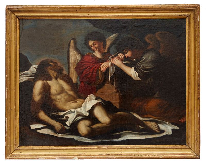 GIOVANNI FRANCESCO BARBIERI detto il GUERCINO (Cento 1591 - Bologna 1666), copia da. "Compianto sul Cristo morto". Olio su tela. Cm 52x71,5.