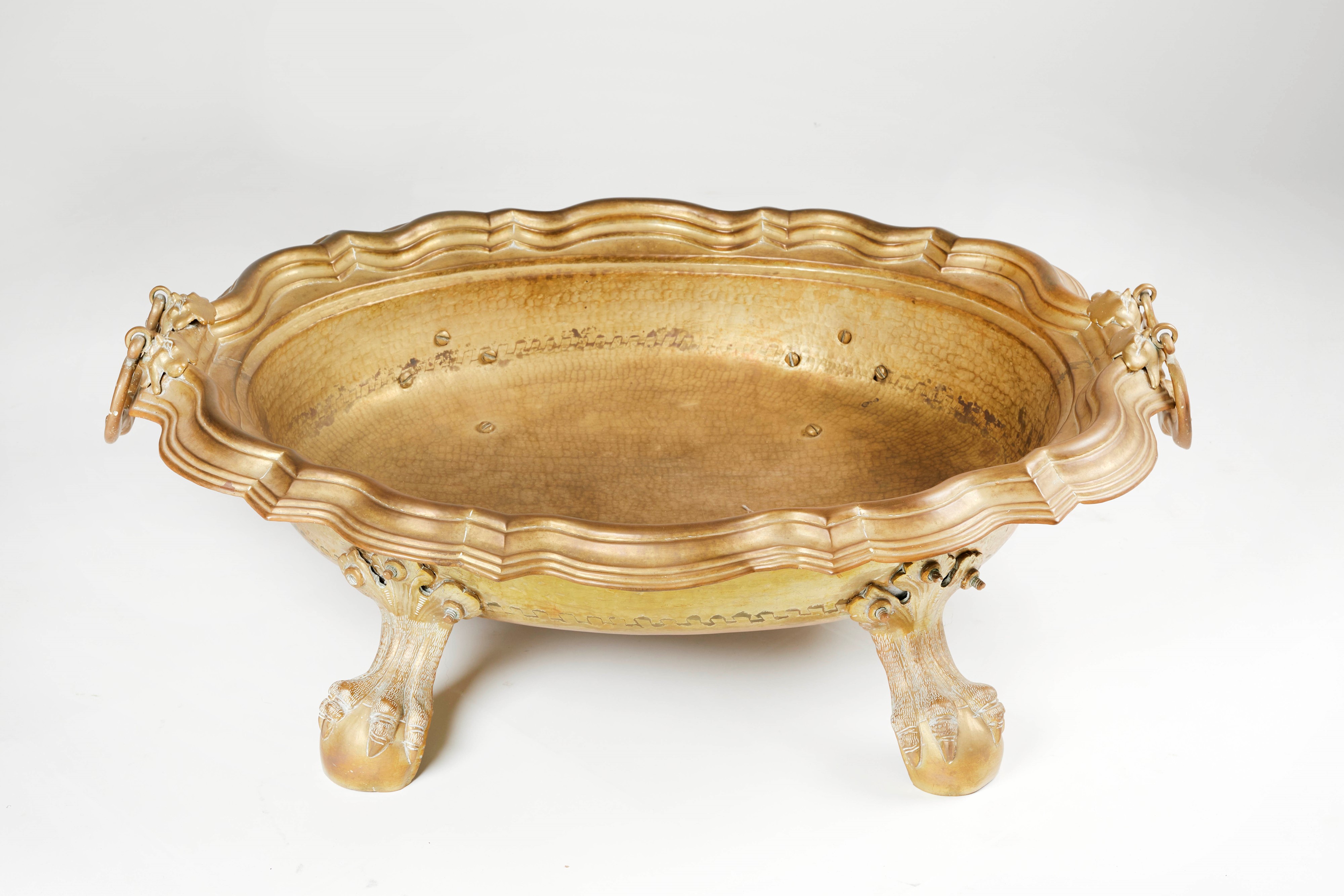 Braciere in bronzo Luigi XIV. Seconda metà del XVII secolo. Venezia. Cm 29x94x71. Oggetto accompagnato da autentica su fotografia e da certificato d'autenticità con perizia, firmato da Paolo Morigi, in data 18/11/1985.