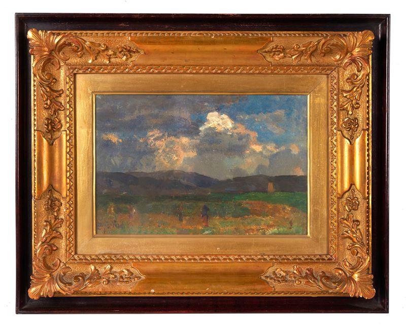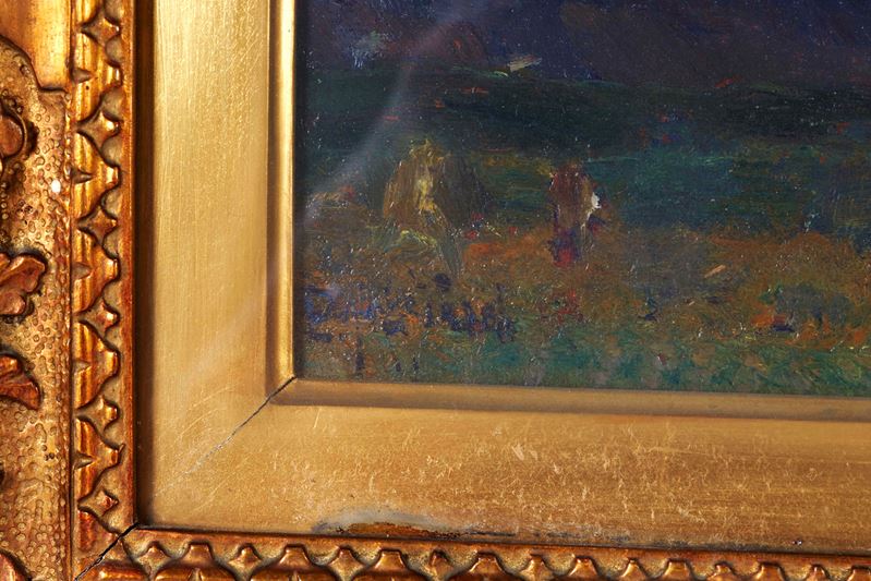 BEPPE CIARDI (Venezia 1875 - Quinto di Treviso 1932) attr. "Paesaggio". Olio su tavola. Cm 21x31,5. Opera firmata in basso a sinistra B. Ciardi. Opera firmata al retro Beppe Ciardi.