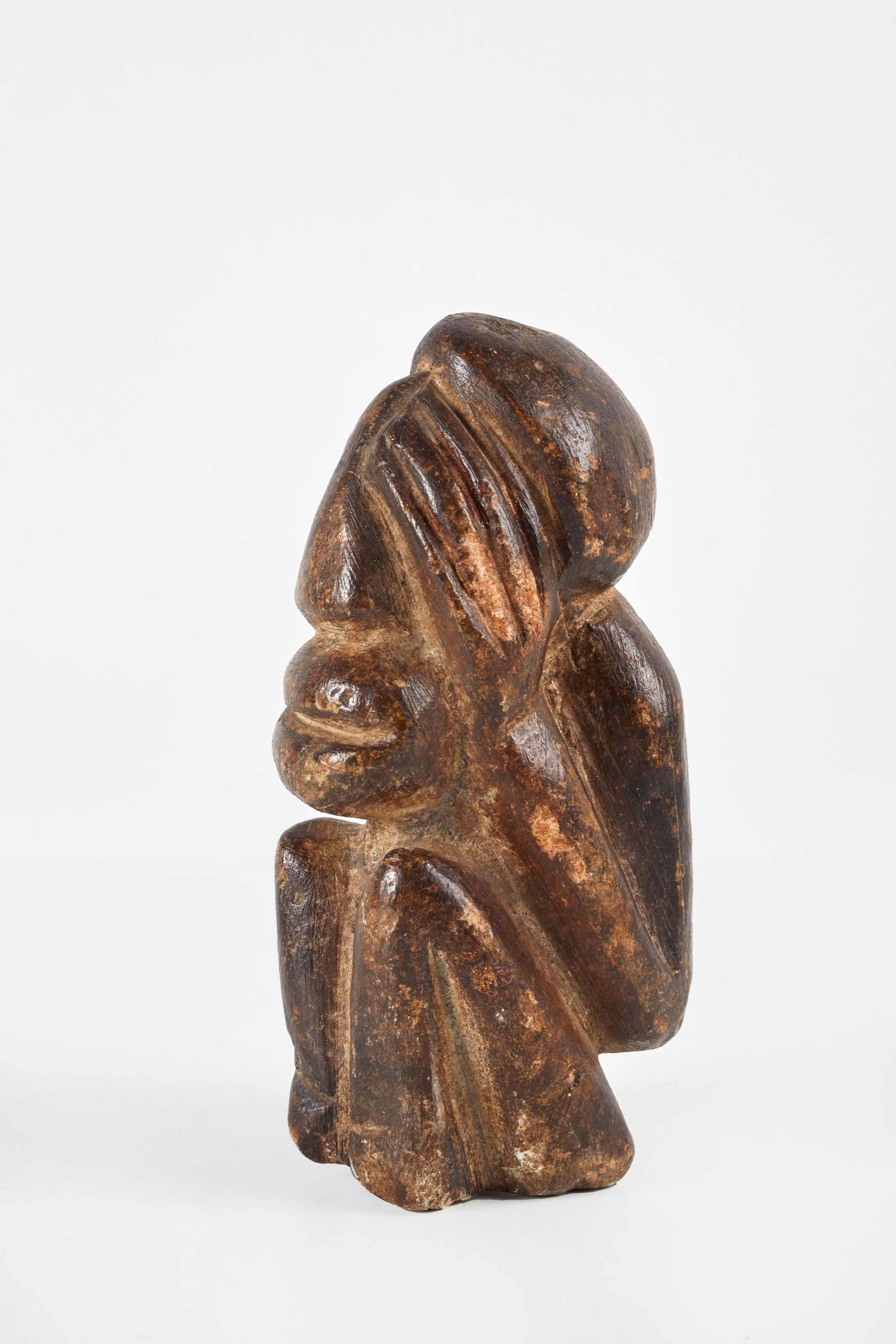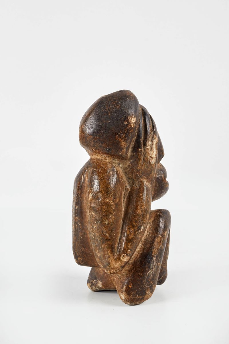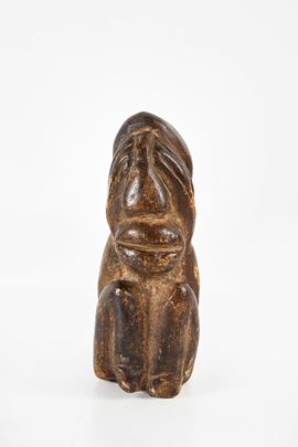 Kissi Pomdo. Scultura antropomorfa in pietra morbida verde. Guinea, Sierra Leone. Prima metà del XX secolo. Cm 14x5. Opera accompagnata da certificato di autenticità con timbro Mondes d'Hier SCS, Bruxelles, e firma di Yvan Guerrin.