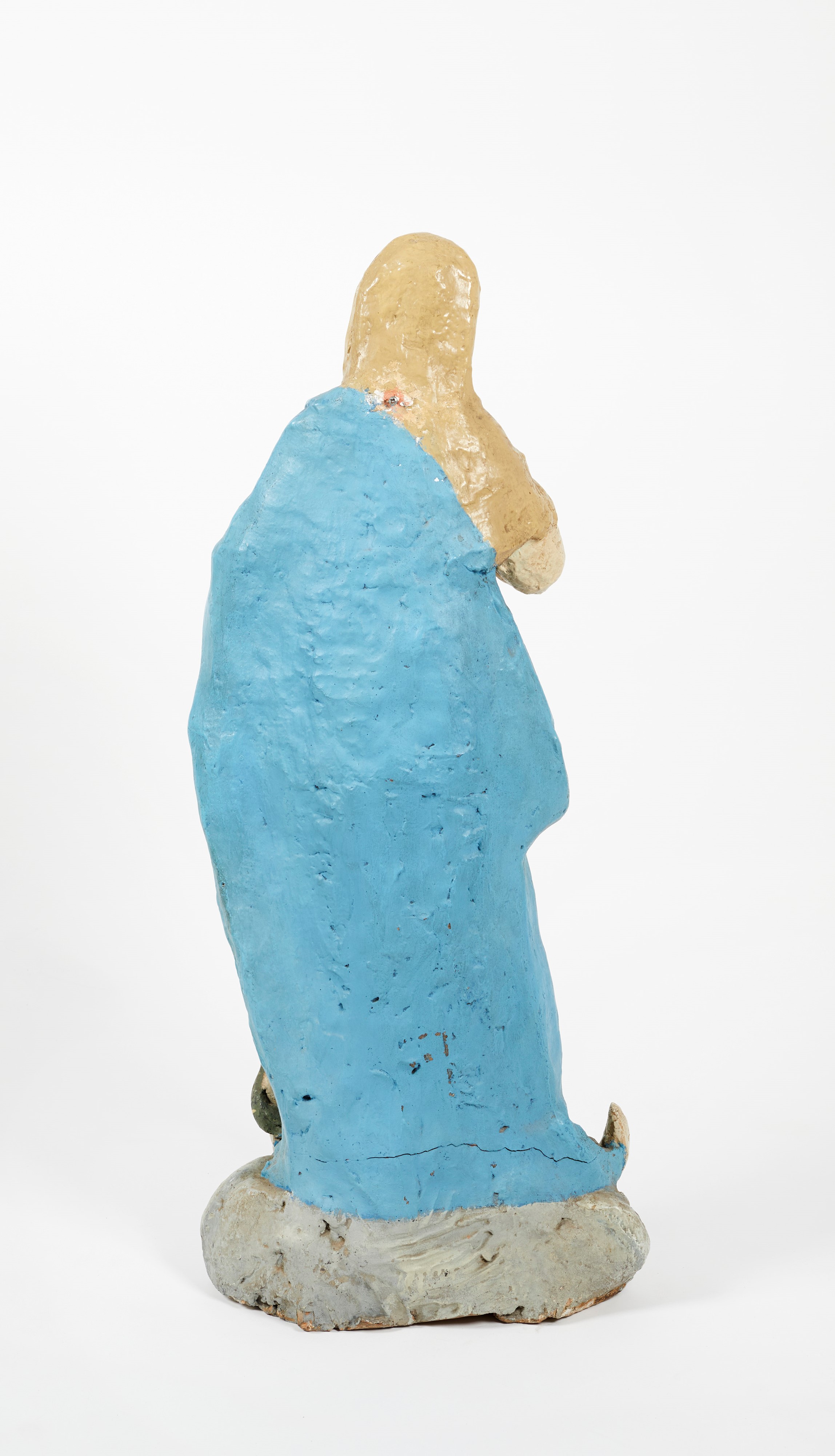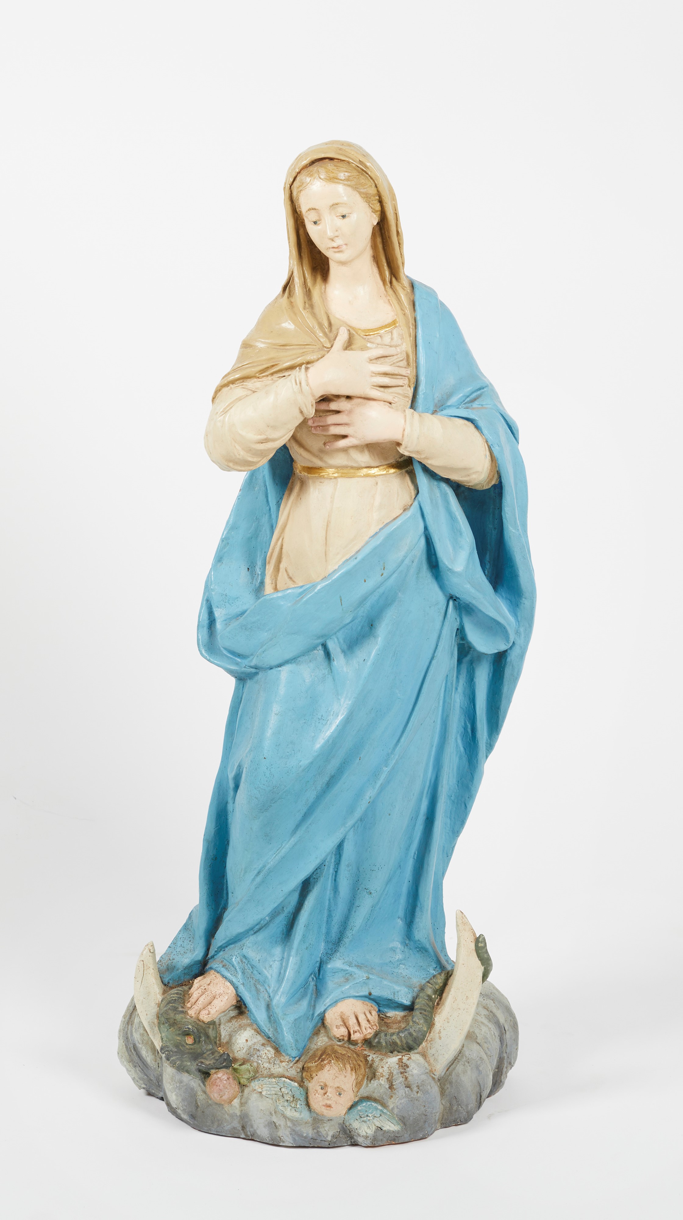 Madonna in terracotta dipinta in policromia. XIX secolo. Cm 95x38x23.