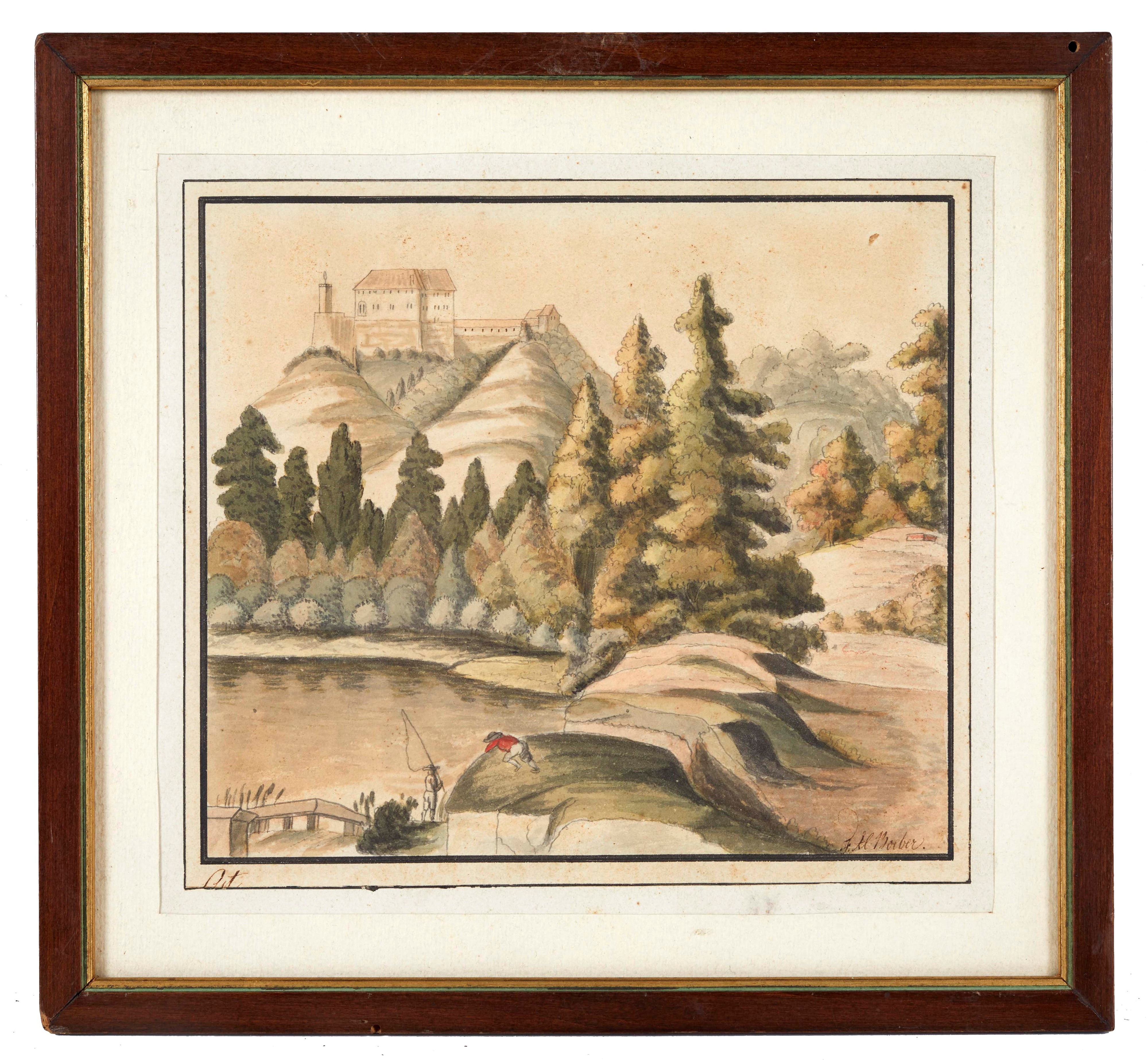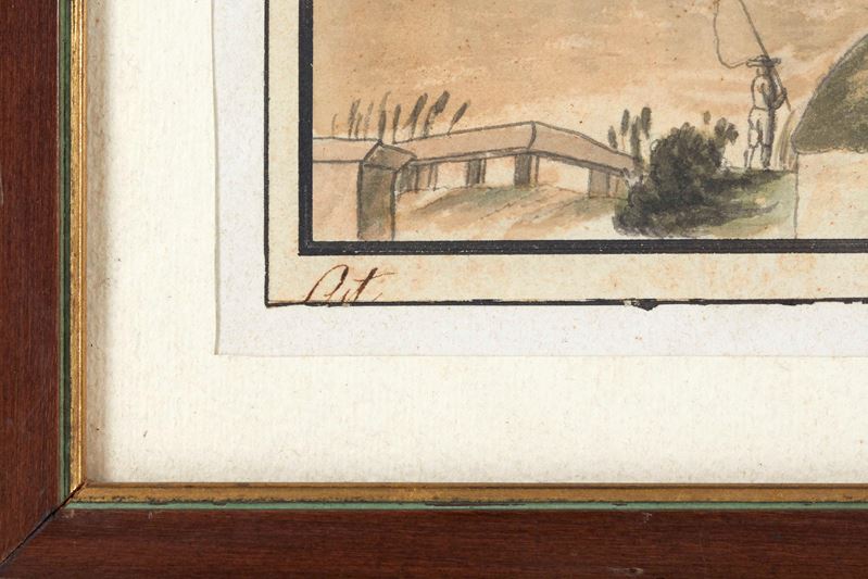 Maestro del XIX secolo. "Paesaggio". Acquerello su carta. Cm 17x19.