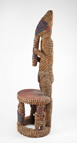 Il trono veniva usato dal Capo del villaggio durante le cerimonie pubbliche, per rievocare il culto degli antenati, al tempo animisti.