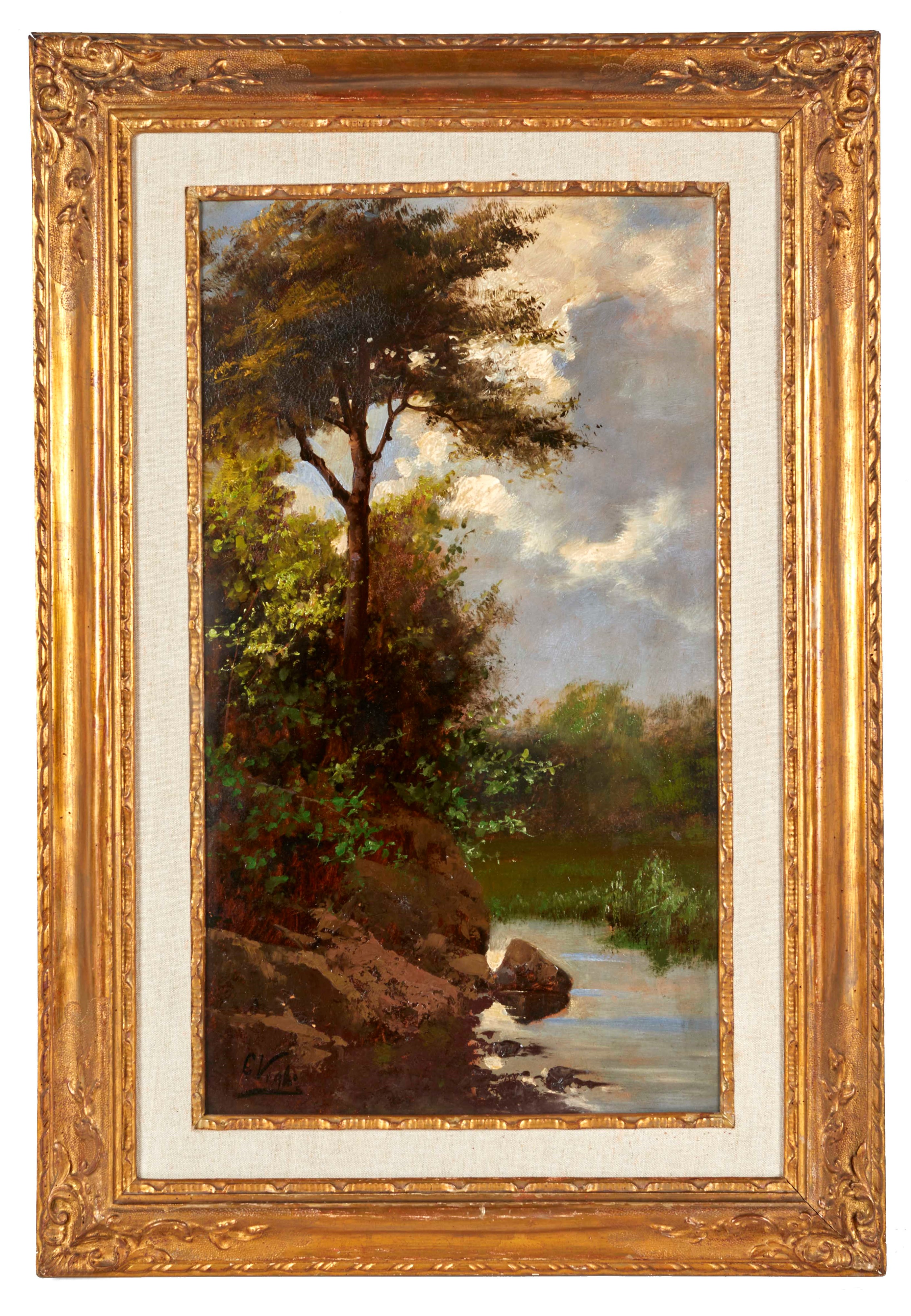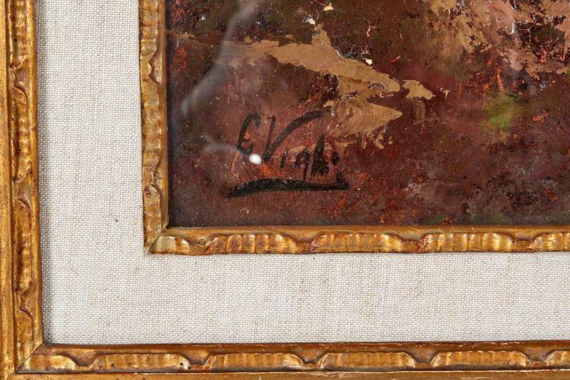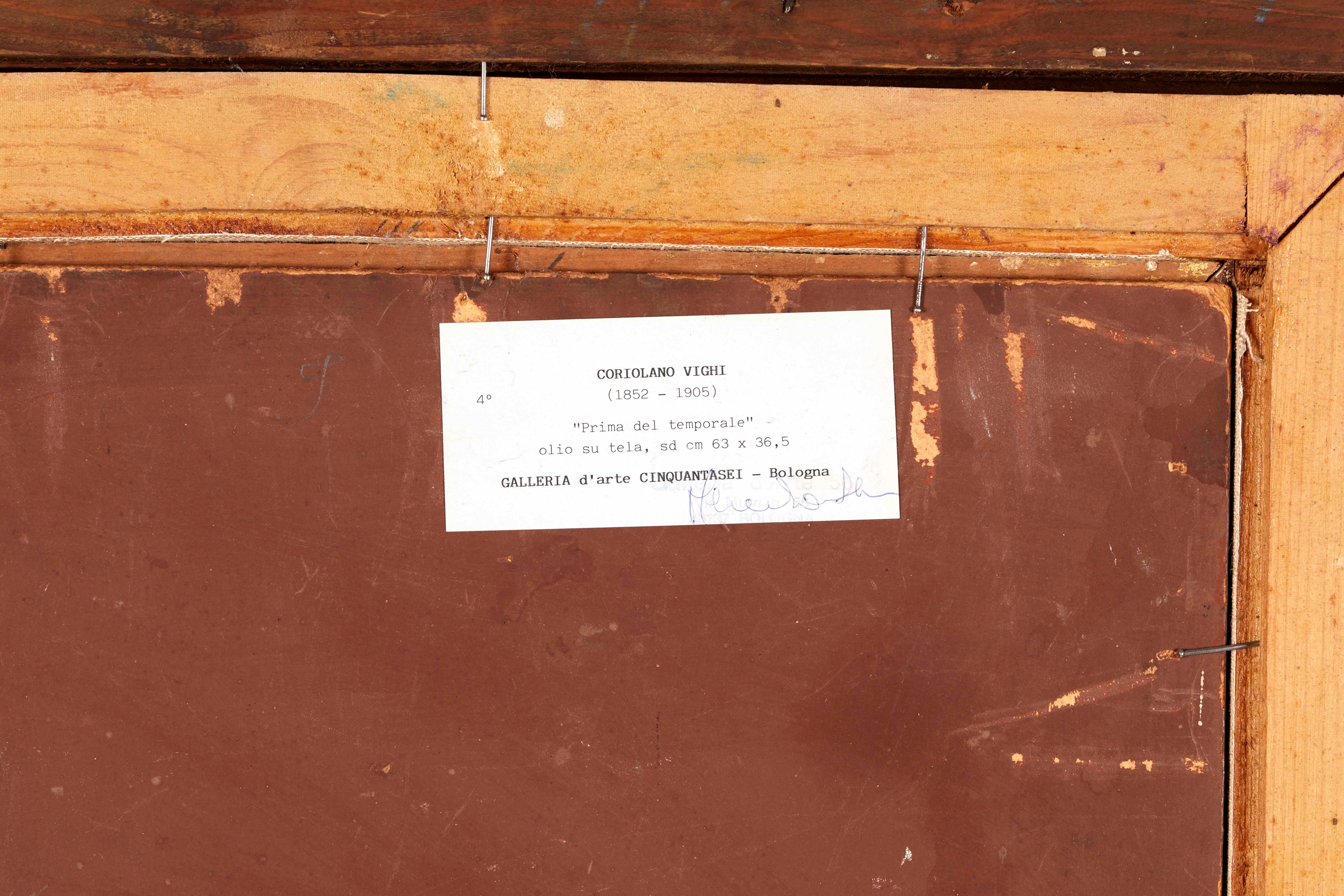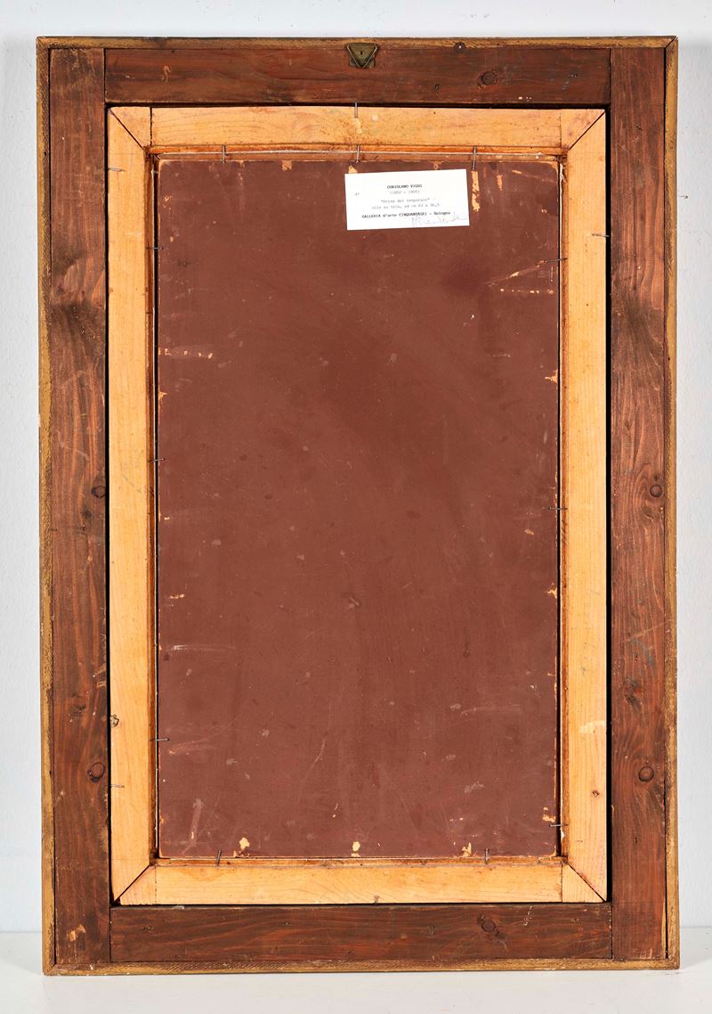 CORIOLANO VIGHI (Firenze 1846 - Bologna 1905) "Prima del temporale". Olio su tela. Cm 63x36,5. Opera firmata in basso a sinistra C. Vighi. Al retro reca etichetta della Galleria d'Arte 56, Bologna. Opera accompagnata da autentica su fotografia firmata dalla Galleria d'Arte 56, in data 30 gennaio 1994.