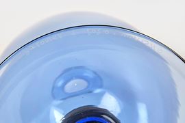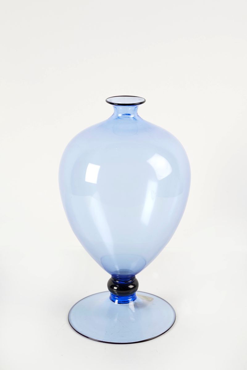 BAROVIER E TOSO Vaso "Veronese" in vetro color zaffiro trasparente. Prod. Barovier e Toso, Murano, Italia, 1980. Cm 29x13ø. Sotto la base reca firma incisa ed etichetta Barovier e Toso.