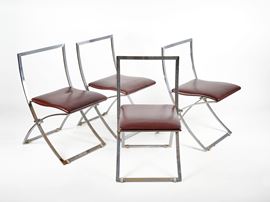 MARCELLO CUNEO (Cagliari 1933 - Cagliari 2015) Lotto composto da 4 sedie pieghevoli modello "Luisa". Struttura in metallo cromato e seduta in pelle color cuoio. Prod. Mobel, Italia, anni '70. Cm 79x60x41. (difetti)