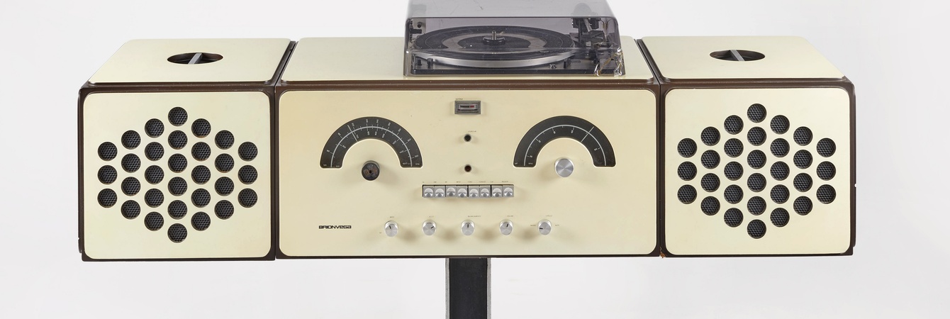 ACHILLE & PIER GIACOMO CASTIGLIONI Radiofonografo giradischi mod. "RR126 fo-st". Corpo in legno bianco su [..], Cm 74x120x37