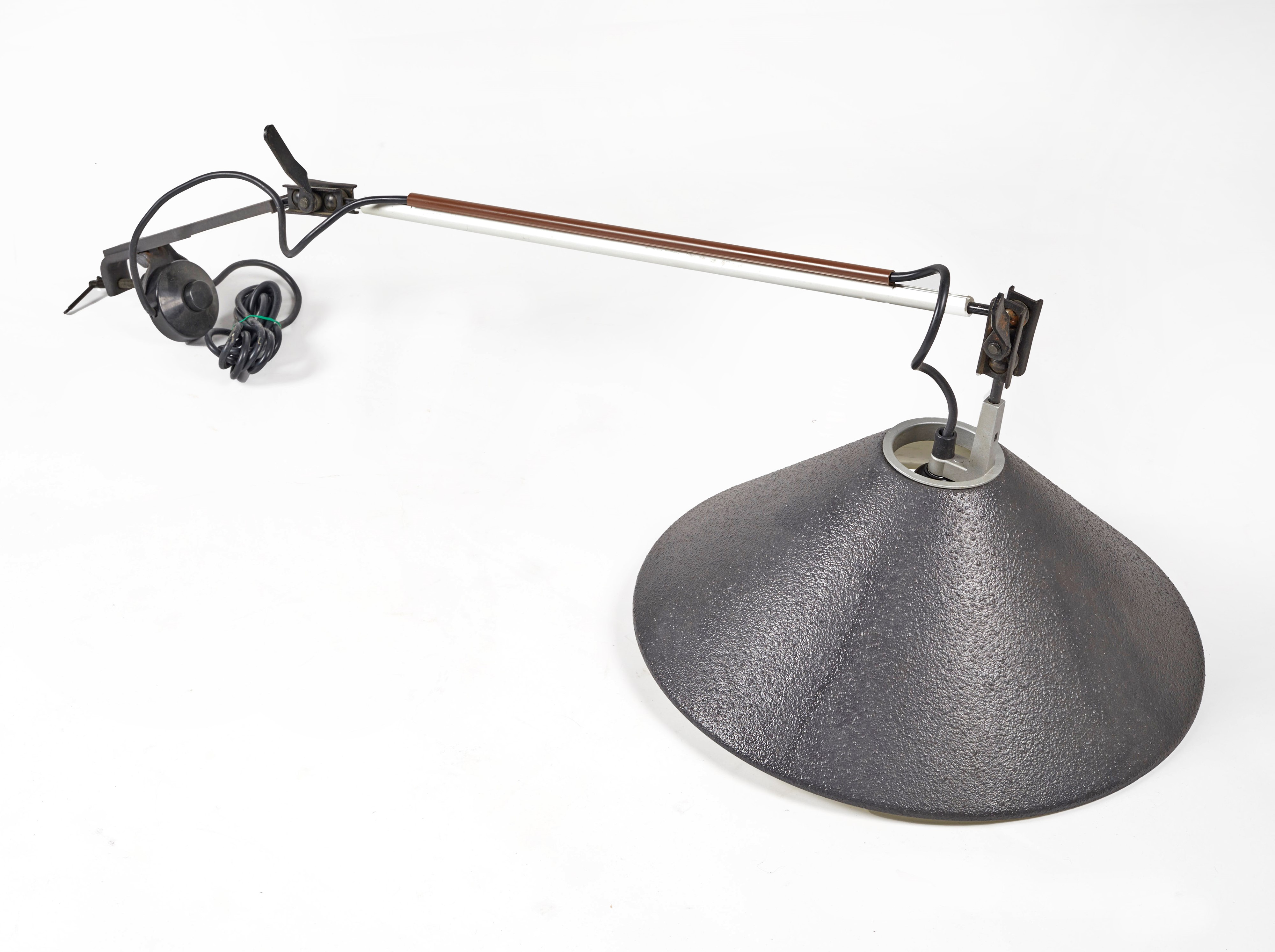 ENZO MARI & GIANCARLO FASSINA Lampada a morsetto in alluminio, acciaio verniciato a polvere e plastica. Prod. Artemide, 1974. Cm 66x38x61.