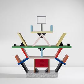 Progettata nel 1981, la Carlton è considerata uno dei pezzi più iconici del movimento Memphis, concepita come una vera e propria scultura funzionale capace di ridefinire il rapporto tra arredo e spazio attraverso un linguaggio radicale e anticonvenzionale.