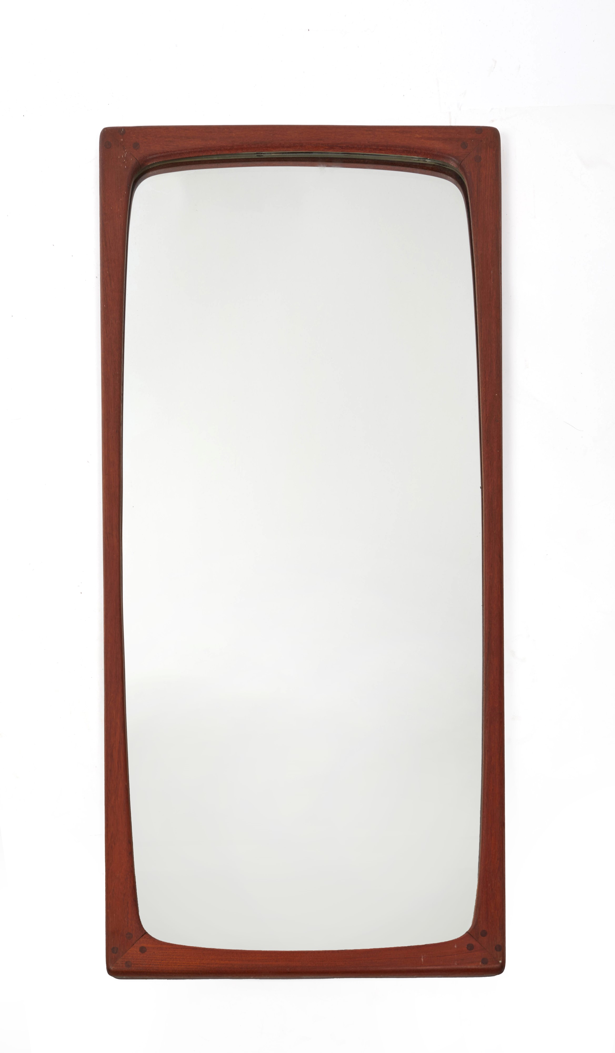 Specchio in teak. Prod. Danimarca, anni '60. Cm 100x47.